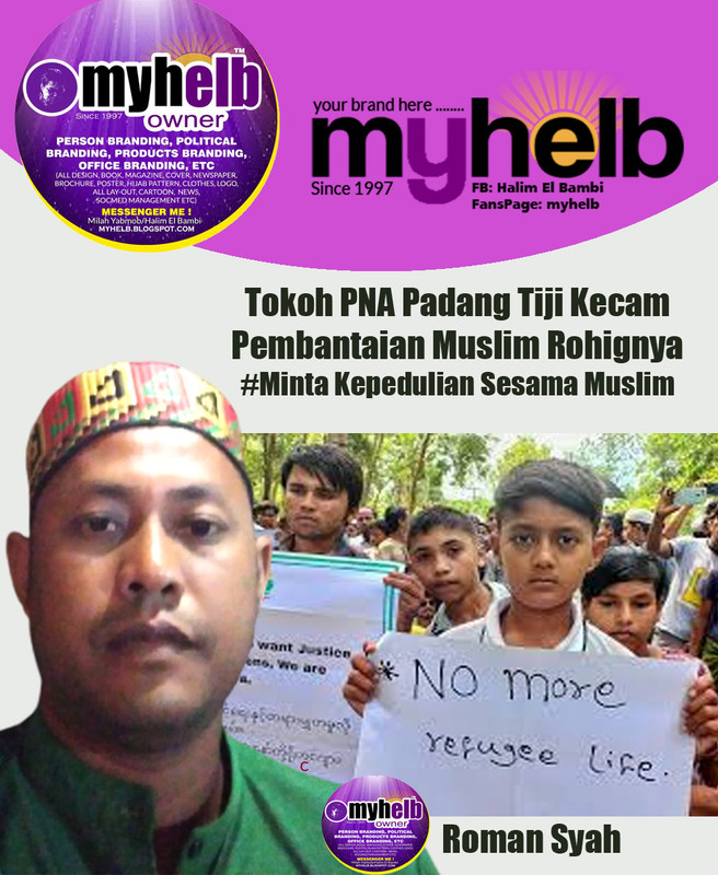 "Bumi ini milik Allah bukan milik pemerintah agresor itu. Semua makhluk Allah di bumi ini berhak untuk hidup dan berkembangbiak. Pembantaian atas Muslim Rohignya jelas merupakan kejahatan paling keji yang harus dilawan." tutup tokoh masyarakat Padang Tiji ini. | Halim El Bambi | Myhelb membaca Zaman